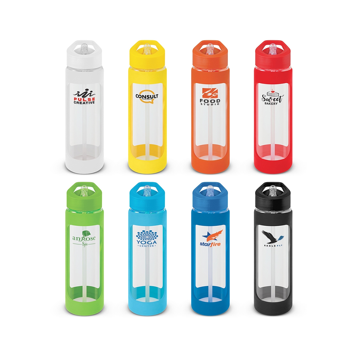 Make a splash and add some pizzazz to conferences, trade shows, customer and employee appreciation gifts with Koya Glass Bottles with Silicone Sleeve! Perfectly suitable for both cold and hot liquids, these stylish reusable bottles are made from lightweight borosilicate glass with a protective soft-touch silicone sleeve. The secure screw on lid features a carry handle plus a flip out drinking valve with an attached straw – making it easy to sip while you go! And unlike single use plastics, Koya is BPA-free so you can enjoy the clean, pure taste without worry.
